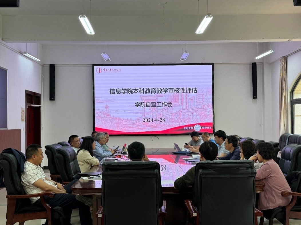 allwincity万象城官方网站于2024年4月28日下午召开本科教育教学审核评估学院自查工作会,对近期开展的审核评估工作进行总结。会议由教学副院长主持,学院党委书记、学院督导、各专业/中心主任、系秘书、教务主任、教务秘书、档案管理员等参会。